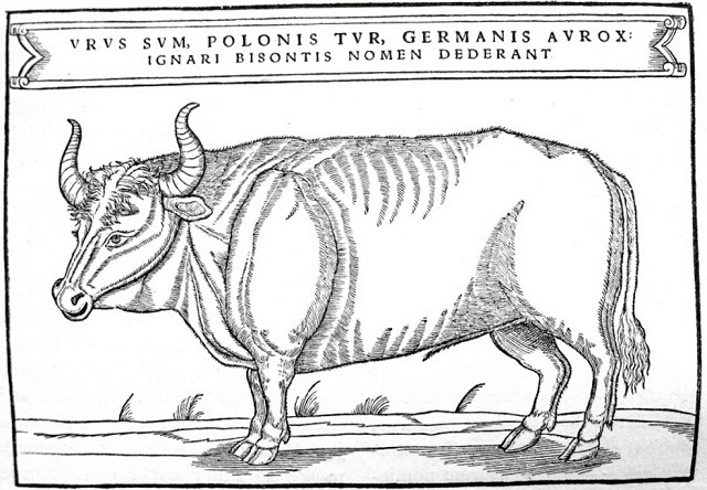 ● Tur (Bos primigenius) – wymarły gatunek ssaka z rodziny krętorogich, przodek niektórych ras bydła domowego. W przeważającym stopniu był trawożercą oraz gatunkiem typowo leśnym i zamieszkiwał tereny zwartych puszcz, nie występując poza ich obszarem. Ze względu na sposób odżywiania w obrębie puszcz wybierał obszary naturalnie porośnięte trawą, były to najczęściej tereny bagienne i mokradłowe, brzegi rzek i jezior. Bezpieczną i spokojną ostoją była dla tura puszcza z młodnikami o gęstym podszycie. Przodkowie tura pojawili się około 2 mln lat temu w Indiach, skąd tur rozprzestrzenił się na znaczny obszar Azji, a następnie Europy (występował niemal w całej Europie, poza Skandynawią i Irlandią). Z opisów, a także z badań szkieletów wynika, że był zwierzęciem mniejszym od żubra – miał około 1,6 m (maksymalnie 1,9 m) wysokości w kłębie i ważył około 800–1000 kg.