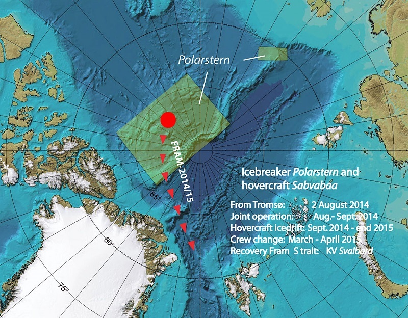 Ekspedycja o kryptonimie „FRAM 2014/15” zaczęła się w sierpniu 2014 roku. Poduszkowiec, któremu nadano imię „Sabvabaa” (w języku Inuitów oznacza „zwinnie poruszający się nad nim”) przez ponad miesiąc współpracował z lodołamaczem Instytutu Wegenera „Polarstern” w badaniach w środkowej części Morza Arktycznego (Fig. 8.). We wrześniu na grubym polu lodowym o rozmiarach około 300 x 300 m została zbudowana stacja dryfująca – z brył lodowych zbudowano hangar dla poduszkowca i miejsce do pobierania prób z dna morskiego oraz zmontowano aparaturę badawczą (Fig. 7.). Załogę stacji stanowią emerytowany profesor Uniwersytetu w Bergen Yngve Kristoffersen i Audun Tholfsen. Zamieszkują oni we wnętrzu poduszkowca (Fig. 9–11.). Wymiana załogi ma nastąpić w lutym lub marcu bieżącego roku. Czas pracy stacji planowany jest do końca 2015 roku.