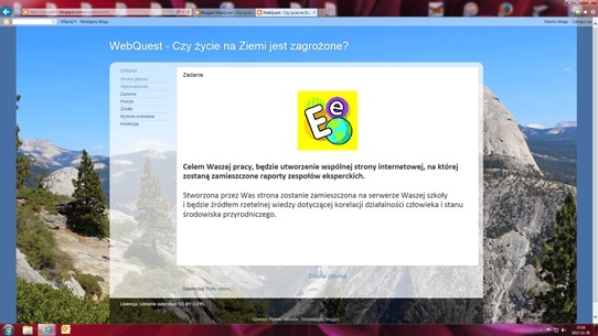 2. Zadanie – jasne i zwięzłe przedstawienie oczekiwanych rezultatów pracy uczniów, np.Źródło: WebQuest – Czy życie na Ziemi jest zagrożone? http://ziemia2013.blogspot.com/