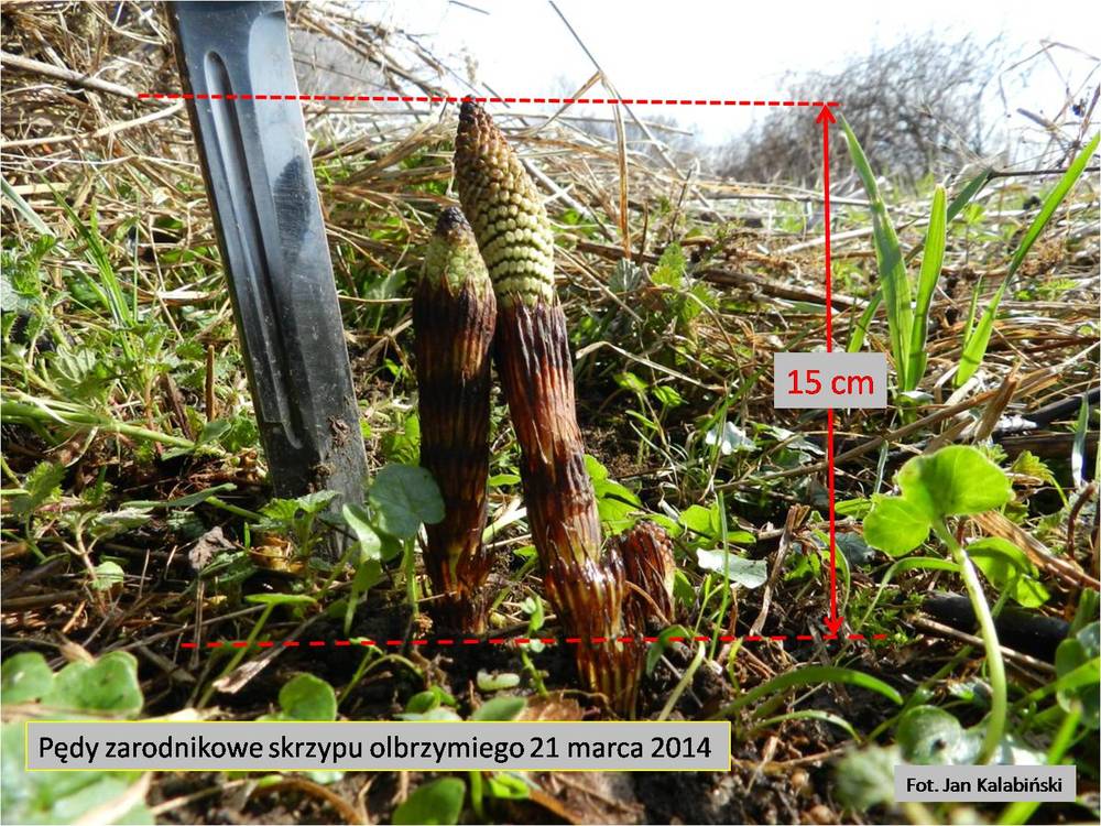 Skrzyp olbrzymi (Equisetum maximum), bo o nim tu mowa, jest rośliną która stanowi żywą pamiątkę fauny karbońskiej. Gatunek ten występuje coraz rzadziej ze względu na zmniejszanie się powierzchni jego siedlisk wskutek działalności człowieka. W Polsce jest prawnie chroniony ma stanowiska w Karpatach, rzadziej w Sudetach i na Niżu Polskim w północnej części kraju. Niech zatem nikogo nie dziwi radość autora, gdy co roku obserwuje w Raciborzu odradzanie się jednego z kilku łanów skrzypu olbrzymiego.
